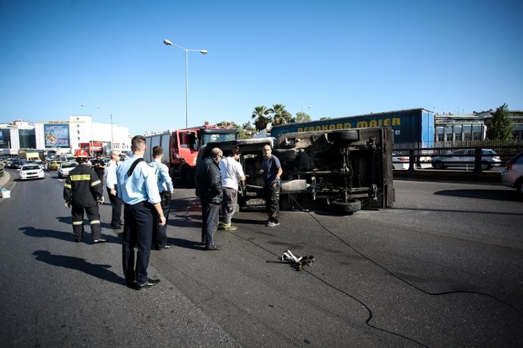 Επικράτησε κυκλοφοριακό κομφούζιο για περισσότερο από μία ώρα από την ανατροπή φορτηγού