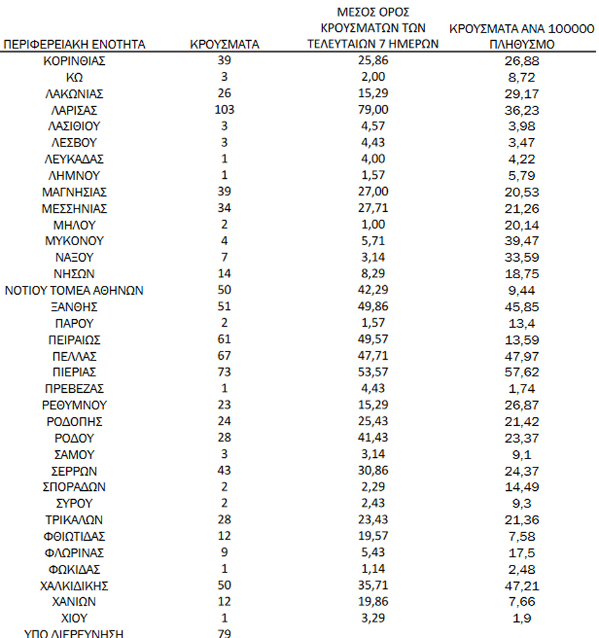 Τα κρούσματα στις Περιφέρειες της Αττικής