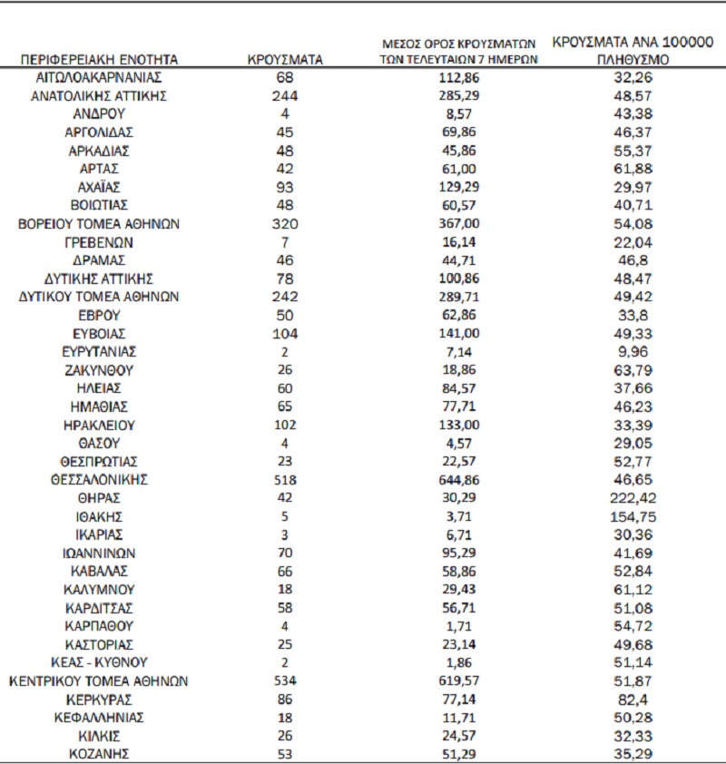 Στην Αττική καταγράφηκαν 1.928 από τα συνολικά 4.701 νέα κρούσματα, ενώ στην Περιφερειακή Ενότητα Θεσσαλονίκης εντοπίστηκαν 518 νέες λοιμώξεις.
