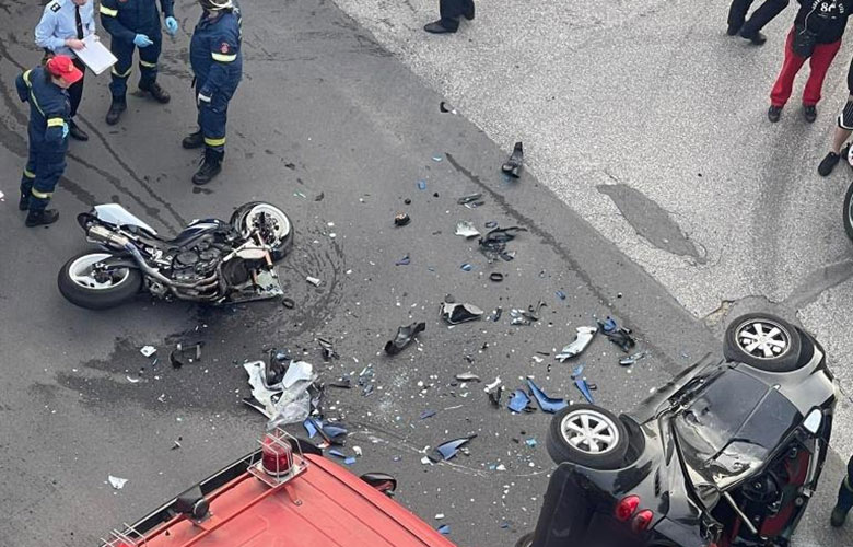 Ο οδηγός της μηχανής εκτινάχτηκε και κατέληξε μέσα στην καμπίνα του αυτοκινήτου το οποίο τούμπαρε. Στο σημείο έσπευσαν ασθενοφόρα και οχήματα της Πυροσβεστικής.