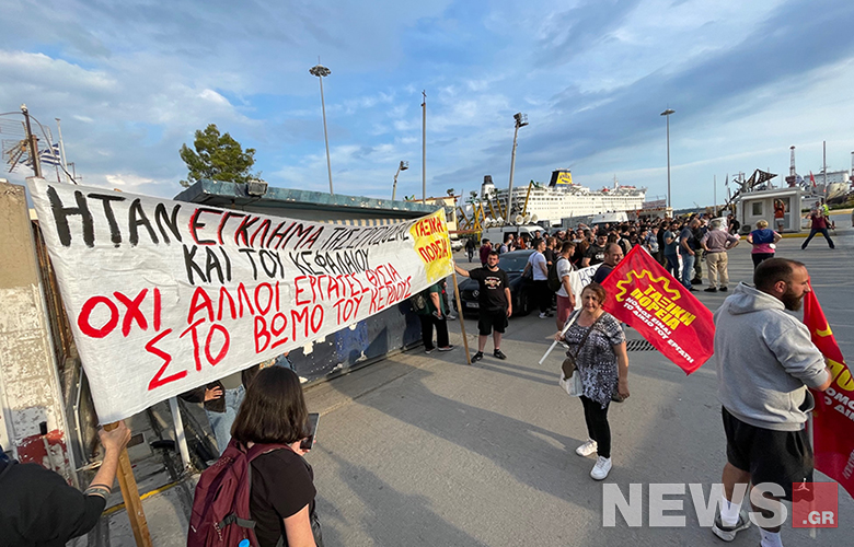 Επίσης νωρίτερα το μεσημέρι είχε γίνει συγκέντρωση διαμαρτυρίας έξω από το υπουργείο Ναυτιλίας.