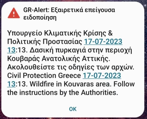Κοντά στο σημείο που ξέσπασε η φωτιά υπάρχουν κατοικίες χωρίς να απειλούνται μέχρι στιγμής, ενώ πριν λίγα λεπτά εστάλη μήνυμα από το 112. «Ακολουθείστε τις οδηγίες των Αρχών», αναφέρει το μήνυμα.