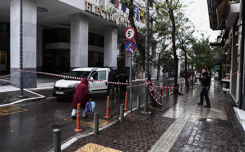 Επιχείρηση του ΤΕΕΜ στη Μητροπόλεως για μια μαύρη βαλίτσα έξω από ξενοδοχείο – Δείτε φωτογραφίες