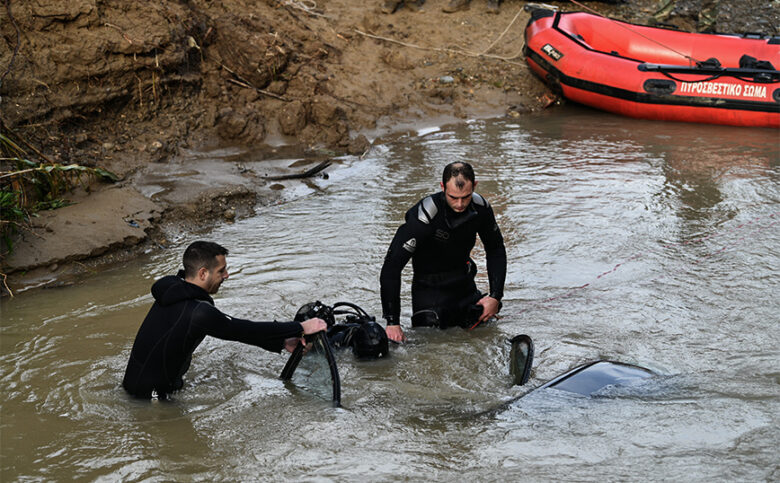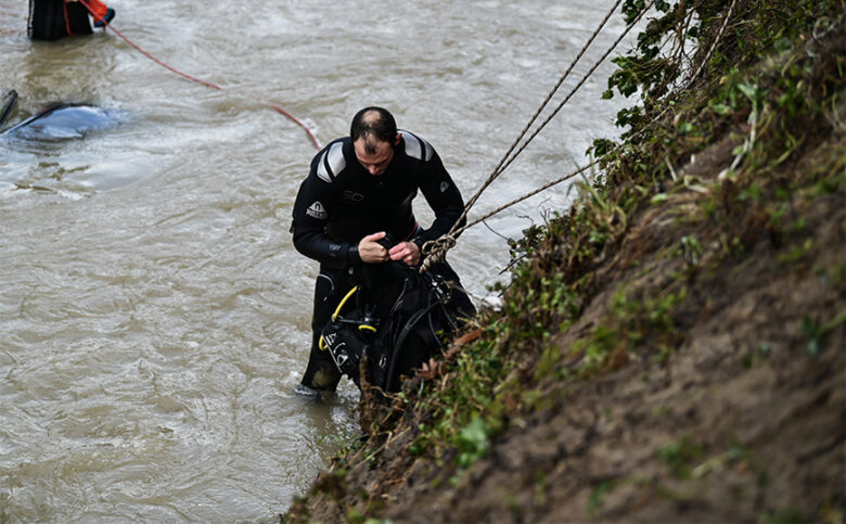 Δύτες, βάρκες αλλά και σκαπτικά μηχανήματα επιχειρούν για να εντοπιστεί και ο οδηγός του οχήματος, με τις ελπίδες όμως να σβήσουν όσο περνά η ώρα, σύμφωνα με την ΕΡΤ.