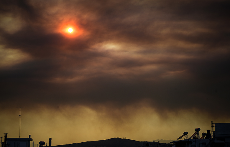Αντιμέτωποι με μια αποπνικτική και απόκοσμη εικόνα ήρθαν οι κάτοικοι της Αττικής λόγω της πυρκαγιάς που μαίνεται στην Εύβοια.