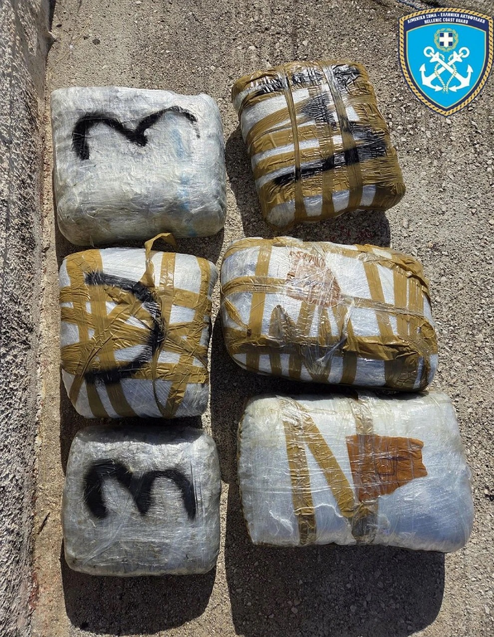 Κατά τη διάρκεια των ερευνών, με τη συνδρομή ιδιώτη δύτη, ανεσύρθησαν πέντε πλαστικές συσκευασίες που περιείχαν 79,75 κιλά ακατέργαστης κάνναβης από το εσωτερικό του σκάφους. Την επόμενη ημέρα (25 Οκτωβρίου 2025), στη θαλάσσια περιοχή «Βόντα» Σαγιάδας, εντοπίστηκε επιπλέον σάκος με έξι νάιλον συσκευασίες και 56,13 κιλά της ίδιας ουσίας.
