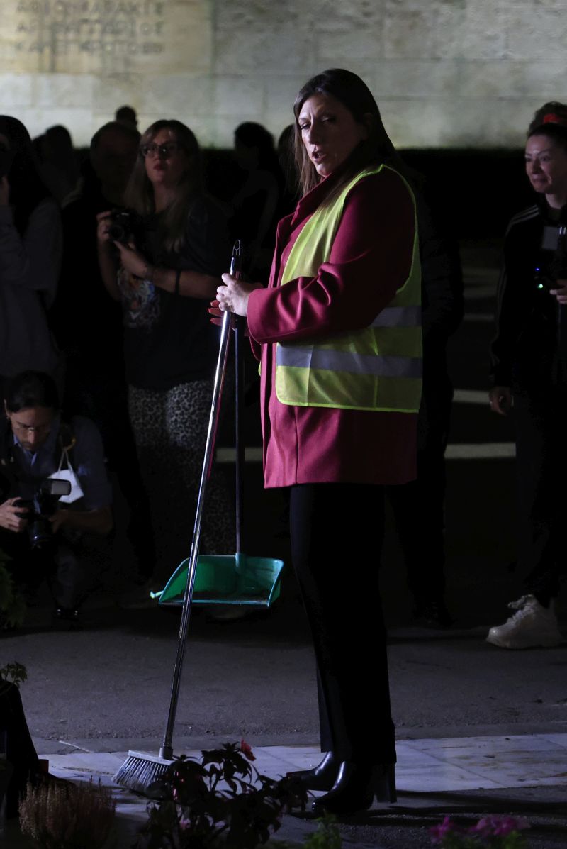 Η ομάδα «Μέχρι τέλους» ανέλαβε δράση καθαρισμού στο μνημείο για τα Τέμπη στη Βουλή
