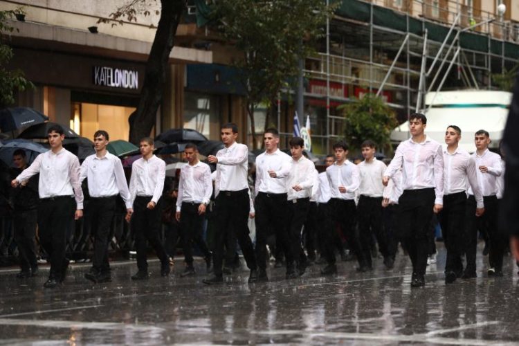 Υπό βροχή η μαθητική παρέλαση για την 28η Οκτωβρίου στη Θεσσαλονίκη