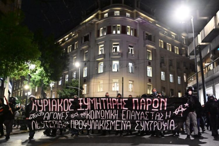 Λίγο πριν τις 20:30′ αφού είχε εξελιχθεί ομαλά η συγκέντρωση και πορεία των ατόμων σε κεντρικούς οδικούς άξονες της Αθήνας, κατά την αποχώρηση των συγκεντρωμένων προς την περιοχή των Εξαρχείων, ομάδα ατόμων προχώρησε σε επίθεση με χρήση καδρονιών και ρίψη αντικειμένων και φωτοβολίδων σε βάρος των αστυνομικών δυνάμεων στη συμβολή των οδών Πανεπιστημίου και Εμ. Μπενάκη.
