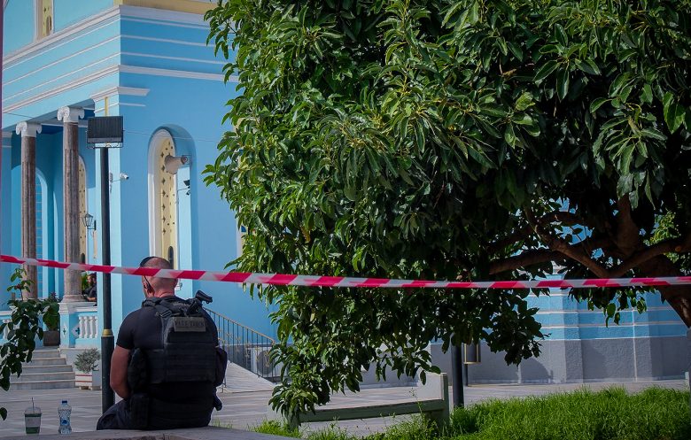 Όσοι θέλουν να πάνε στην εκκλησία ελέγχονται από τις Αρχές. Μάλιστα, σύμφωνα με το flashnews.gr, στην είσοδο υπάρχει μηχάνημα ανιχνευτή μετάλλων για όποιον θέλει να μπει στον ναό.