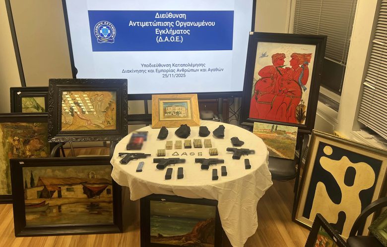 Δύο συλλήψεις στην Αττική για κατοχή πλαστών έργων τέχνης – Κατασχέθηκαν πάνω από 400 πίνακες ζωγραφικής, όπλα και σφαίρες