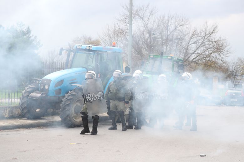 Νωρίτερα, μια ομάδα αγροτών και κτηνοτρόφων επιχείρησε πεζή πορεία προς τον κόμβο του αεροδρομίου όπου σημειώθηκε ένταση με τις αστυνομικές δυνάμεις και έγινε χρήση χημικών.