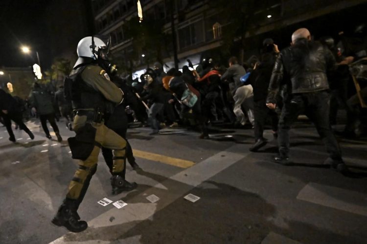 Κατά την ολοκλήρωση της απογευματινής πορείας και περί ώρα 20:05′, ομάδα περίπου 400 ατόμων, που έφερε καδρόνια και αντιασφυξιογόνες μάσκες, επιτέθηκε σφοδρά κατά διμοιριών αποκατάστασης τάξης στη συμβολή των οδών Πανεπιστημίου και Εμμανουήλ Μπενάκη.
