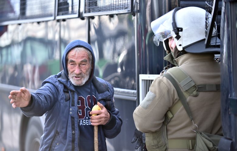 Εκπρόσωπος των αγροτών από τις Μικροθήβες ζήτησε να αποχωρήσουν τα ΜΑΤ για να πραγματοποιηθεί η ειρηνική τους διαμαρτυρία: «Είμαστε από το μπλόκο Μικροθηβών. Δεν έχουμε έρθει εδώ για φασαρία. Αυτό που βλέπουμε εδώ είναι ανεπίτρεπτο. Υπάρχουν ήδη δέκα διμοιρίες των ΜΑΤ, για να κάνουν τι; Να σταματήσουν ποιον; Εδώ είμαστε στο επιβατικό λιμάνι. Όλη η κοινωνία είναι μαζί μας, σε λίγο θα είναι αγρότες από όλη τη Θεσσαλία και όλες οι κοινωνικές ομάδες στο πλευρό μας. Θέλουμε σε ένδειξη καλής θέλησης να αποχωρήσουν τα τρακτέρ από εδώ και να κινηθούμε στο εμπορικό κομμάτι του λιμανιού και να αποκλείσουμε αυτό. Και εσείς σε ένδειξη καλής θέλησης να πάρετε τις κλούβες και να αφήσετε τον κόσμο να διαμαρτυρηθεί ειρηνικά. Αυτή είναι η απόφασή μας».