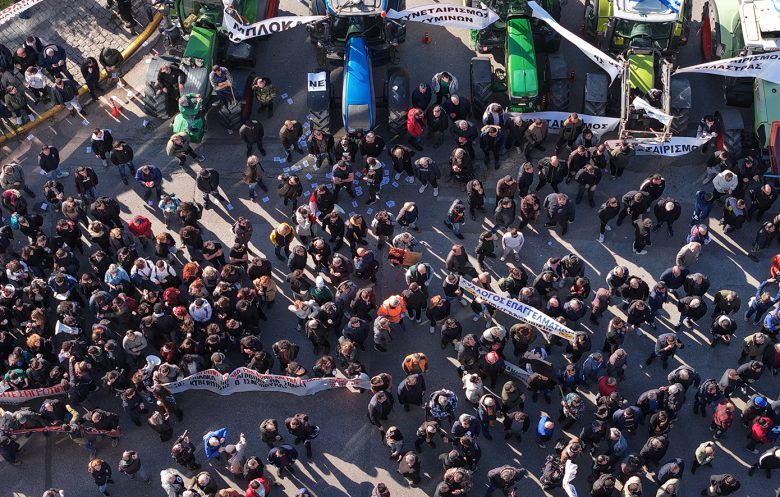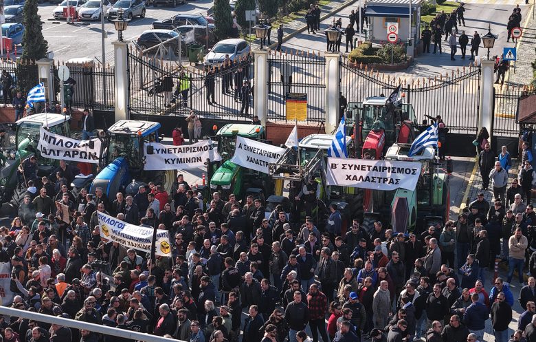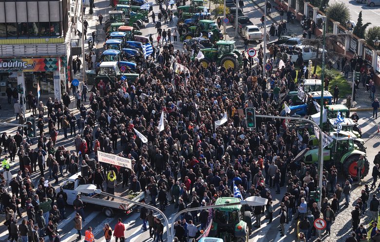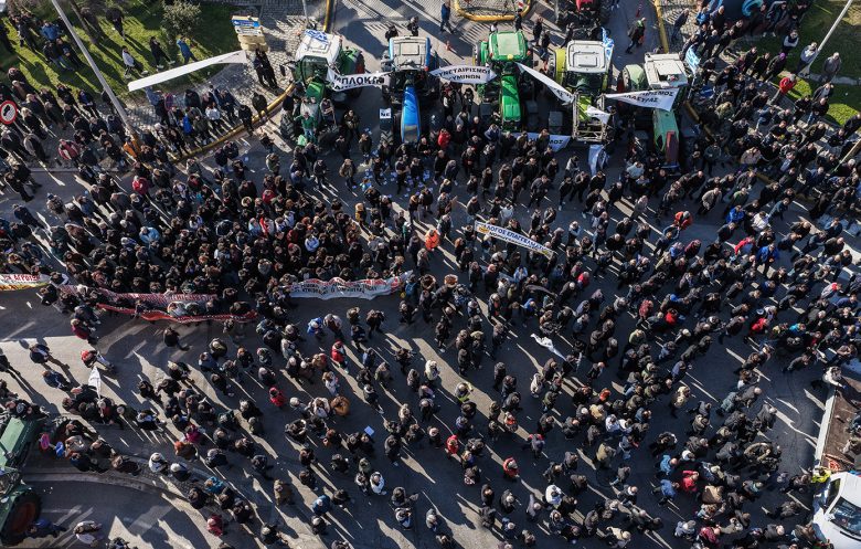 Ένα τέταρτο αργότερα κατέφθασε αντίστοιχος αριθμός τρακτέρ από τα «Πράσινα Φανάρια», στην οδό Κουντουριώτου, και παρατάχθηκαν δεξιά και αριστερά στον δρόμο, σύμφωνα με τις υποδείξεις της Τροχαίας.