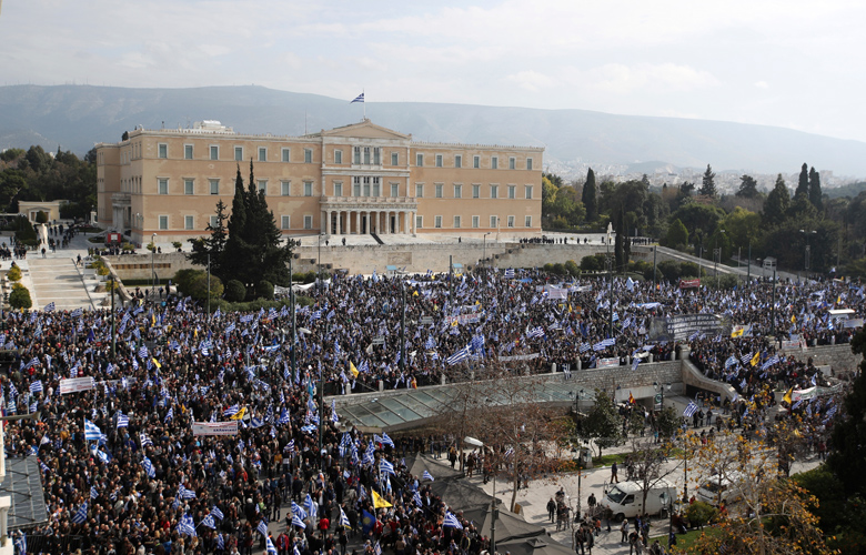 Δεκάδες χιλιάδες κόσμου από όλη την Ελλάδα συγκεντρώθηκαν στην πλατεία Συντάγματος για το μεγάλο συλλαλητήριο για την Μακεδονία, γεμίζοντας όχι μόνο την πλατεία, αλλά και τους γύρω κεντρικούς δρόμους και λεωφόρους.