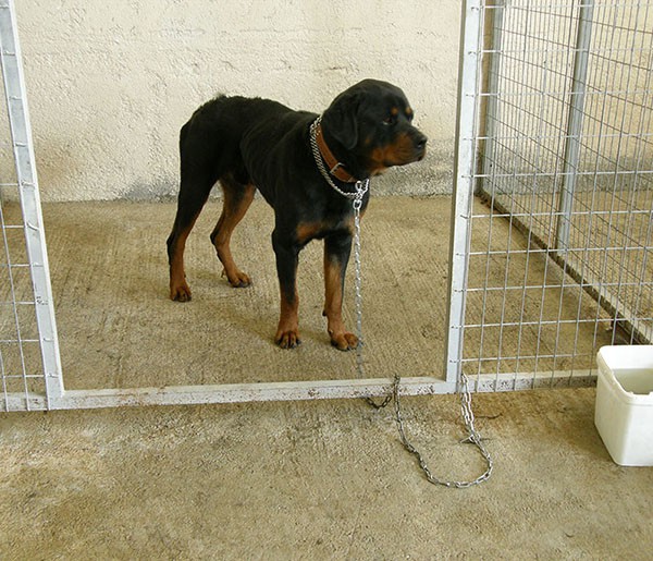 Τo εικονιζόμενo αρσενικό ροτβάιλερ, γεννήθηκε το Μάρτιο 2012 και βρίσκεται στο καταφύγιο του Δήμου Κοζάνης. Έχει χαρακτηριστεί ως επιθετικό απο την ειδική επιστημονική επιτροπή του Δήμου. Δίνεται για υιοθεσία, στειρωμένο και εμβολιασμένο. Το συγκεκριμένο σκυλί υποδείχθηκε απο τον πρώην ιδιοκτήτη του ως υπαίτιο θανάσιμης επίθεσης ανήλικου αγοριού. Αρ.microchip: 990000000430396 (Έκτορας)