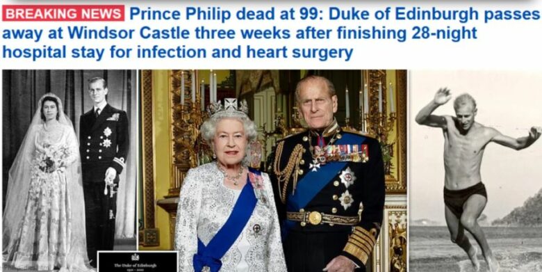Η Daily Mail αναφέρει χαρακτηριστικά: «Ο πρίγκιπας Φίλιππος πέθανε στα 99 του χρόνια: ο Δούκας του Εδιμβούργου ξεψύχησε στο παλάτι του Ουίνσδορ, τρεις εβδομάδες αφού είχε βγει από το νοσοκομείο».