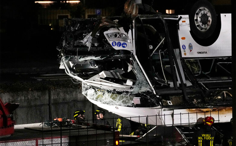 Μια τραγωδία σημειώθηκε χθες στην Ιταλία. Τουλάχιστον 21 άνθρωποι έχασαν τη ζωή τους, ανάμεσά τους ξένοι τουρίστες, και άλλοι 18 τραυματίστηκαν, οι 4 από τους οποίους νοσηλεύονται σε πολύ σοβαρή κατάσταση, όταν λεωφορείο έπεσε από γέφυρα στο Μέστρε, στη Βενετία, και έπιασε φωτιά, σύμφωνα με νεότερο προσωρινό απολογισμό που έδωσε στην ιταλική δημόσια τηλεόραση RAI ο υπεύθυνος συγκοινωνιών του δήμου της Βενετίας Ρενάτο Μποράζο.