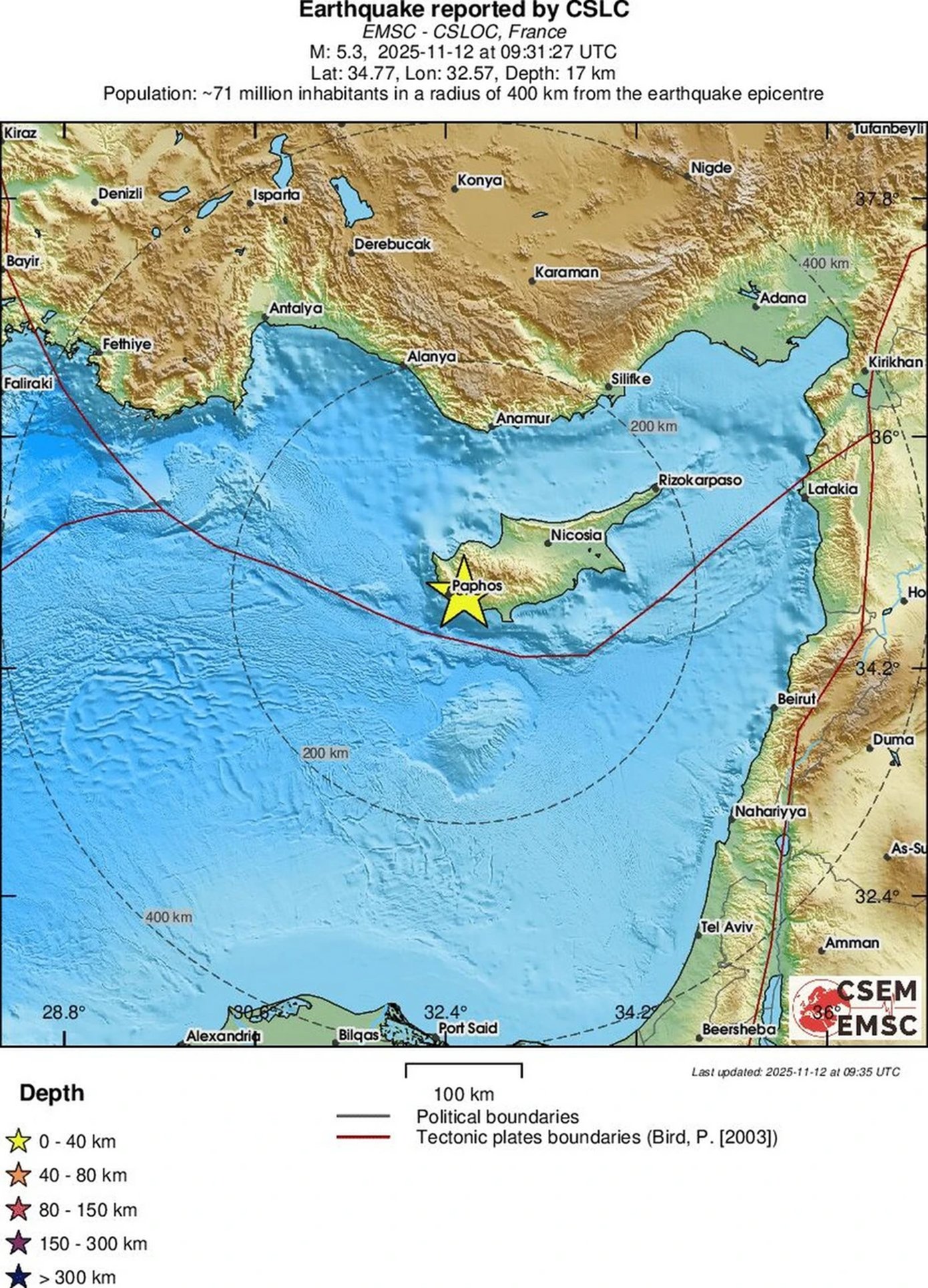Ισχυρός σεισμός 5,2 βαθμών της κλίμακας Ρίχτερ σημειώθηκε πριν από λίγη ώρα στην Κύπρο.