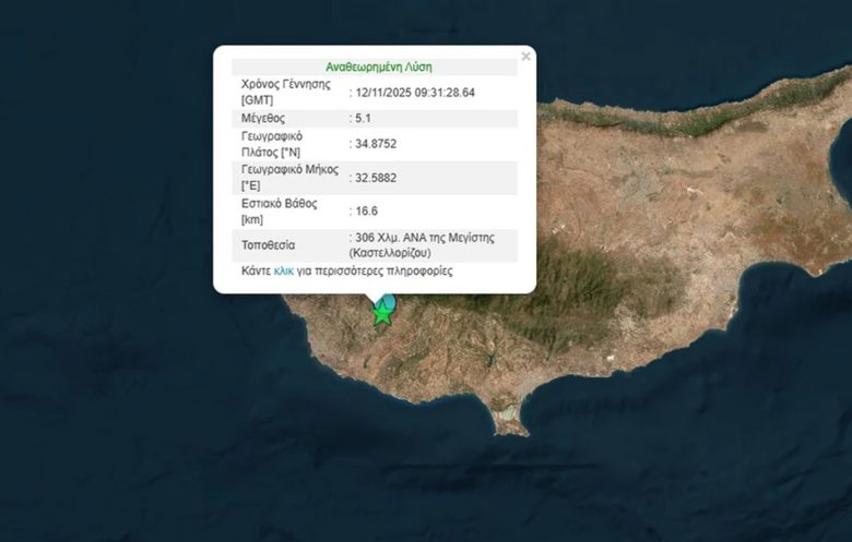Το Γεωδυναμικό Ινστιτούτο, στην αρχική του εκτίμηση, κάνει λόγο για σεισμός μεγέθους 5,1 Ρίχτερ και επίκεντρο 306 χλμ. ανατολικά-νοτιοανατολικά της Μεγίστης (Καστελλορίζου).
