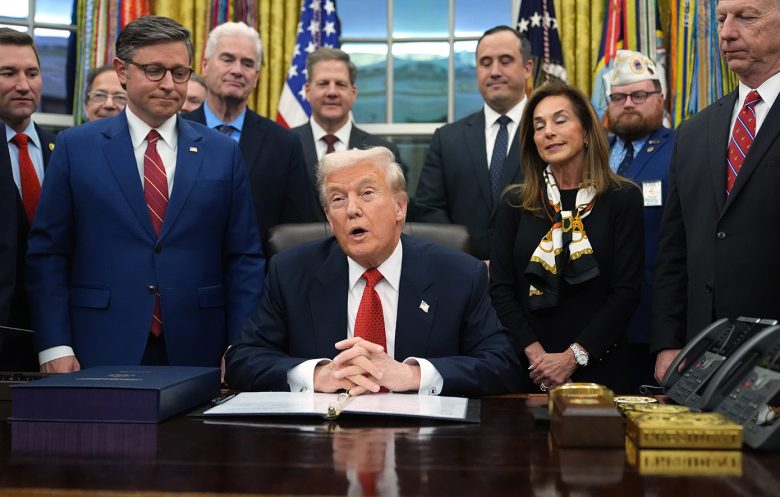 «Σήμερα στέλνουμε το σαφές μήνυμα ότι δεν υποχωρούμε ποτέ σε εκβιασμούς», πέταξε δηκτικά ο μεγιστάνας απευθυνόμενος στους Δημοκρατικούς αντιπάλους του, προτού υπογράψει το κείμενο, επευφημούμενος από Ρεπουμπλικάνους κοινοβουλευτικούς που τον πλαισίωναν στο Οβάλ Γραφείο.