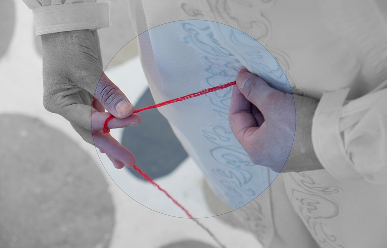 Με σημείο εκκίνησης μια λιθογραφία του Adam Friedel, η εικαστικός Ειρήνη Τσιράκη δημιουργεί έργα στα οποία ξεδιπλώνει πτυχές της προσωπικότητας της ηρωίδας, δημιουργώντας έργα στα οποία συνδυάζεται η ζωγραφική, η μονοτυπία και το κολλάζ. Η Μαντώ συναντά σημαντικές γυναίκες και συνδιαλέγεται μαζί τους, αναπτύσσοντας μια σχέση διαχρονική ανταλλαγής ιδεών και αξιών. Το νήμα από την performance της Φρόσως Ζαγοραίου λειτουργεί ως συνδετικός κρίκος, διεισδύει στην πολυπλοκότητα των ζωγραφικών έργων και τα συσχετίζει μορφολογικά και εννοιολογικά με αυτή. Η performance έχει βιντεοσκοπηθεί και θα προβάλλεται στο πλαίσιο της εγκατάστασης ως video art - ντοκουμέντο.