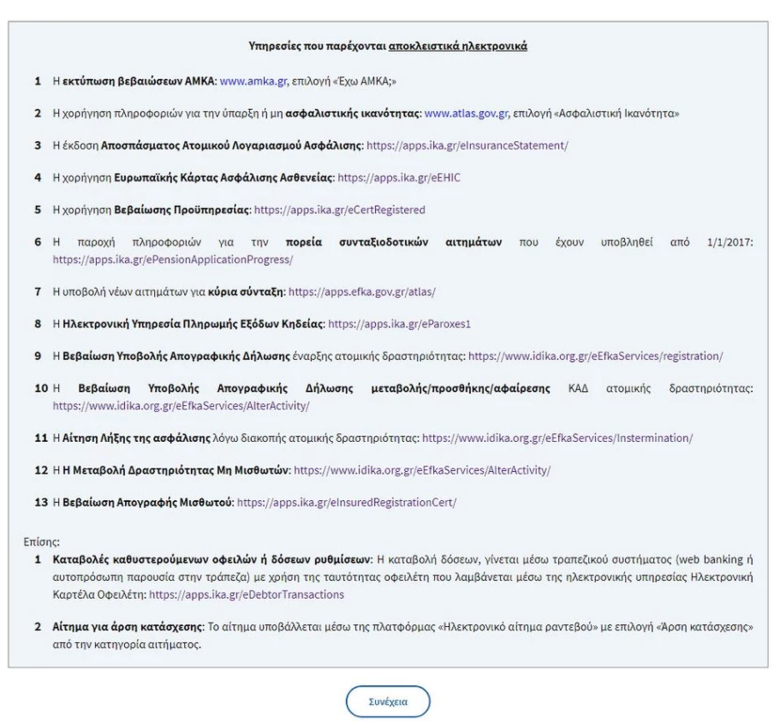 Η δυνατότητα ηλεκτρονικού ραντεβού παρέχεται, μέσω της ενιαίας ψηφιακής πύλης του Δημοσίου Gov.gr, καθώς και της επίσημης ιστοσελίδας του e-ΕΦΚΑ (www.efka.gov.gr/rv).