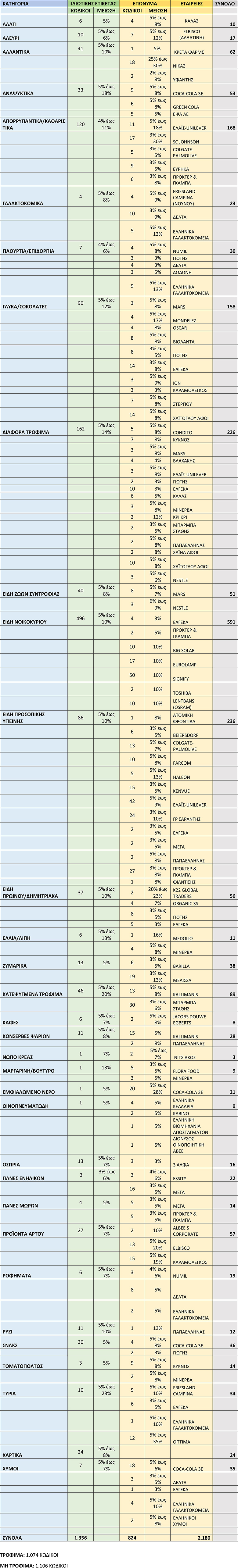 Ενδεικτικά, οι μειώσεις τιμών ανά κατηγορία προϊόντων (οι οποίοι ποικίλουν ανά εταιρεία και κωδικό προϊόντος) έχουν ως εξής: