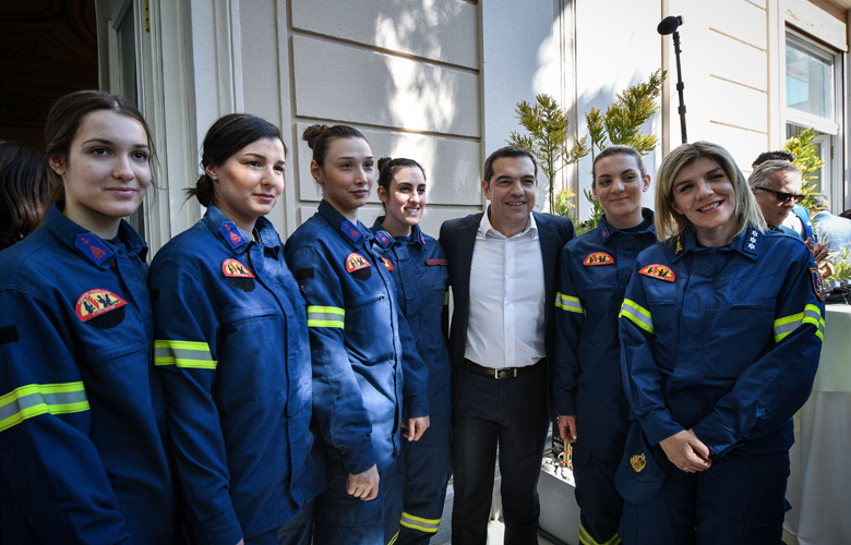 Στον χαιρετισμό που απεύθυνε ο Αλέξης Τσίπρας είπε τα εξής: «Θα ήθελα να ευχαριστήσω όλες και όλους όσοι βρίσκονται σήμερα εδώ. Σήμερα αποφασίσαμε να κάνουμε μία διαφορετική εκδήλωση από τις άλλες, να ανοίξουμε τις πόρτες του Μεγάρου Μαξίμου για να έρθουν γυναίκες από διαφορετικές κοινωνικές κατηγορίες και εργασιακές ομάδες . Γυναίκες του μόχθου, της εργασίας, γυναίκες με κοινωνικό έργο, γυναίκες της επιστήμης και της έρευνας , των γραμμάτων και των τεχνών. Γυναίκες που εργάζονται, που παλεύουν, που αγωνίζονται. Γυναίκες από τα Σώματα Ασφαλείας και των Ενόπλων Δυνάμεων.