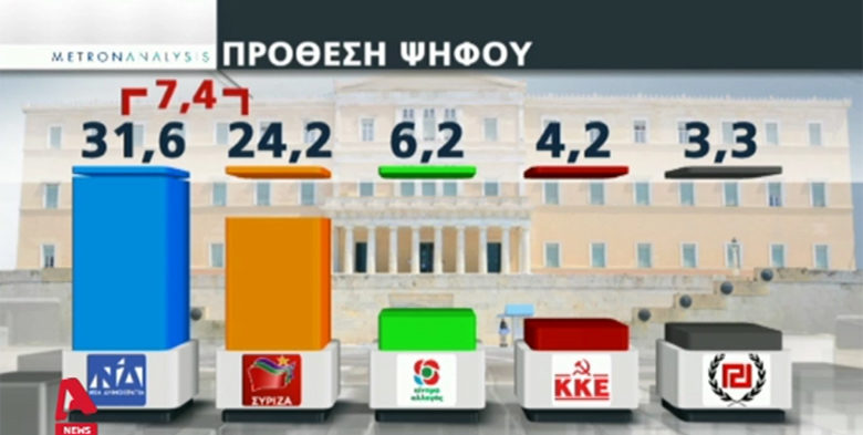 Τέσσερις ημέρες πριν τις εθνικές εκλογές της 7ης Ιουλίου, η Metron Analysis παρουσίασε την τελευταία δημοσκόπηση πριν τις εκλογές της 7ης Ιουλίου για λογαριασμό του τηλεοπτικού σταθμού Alpha.