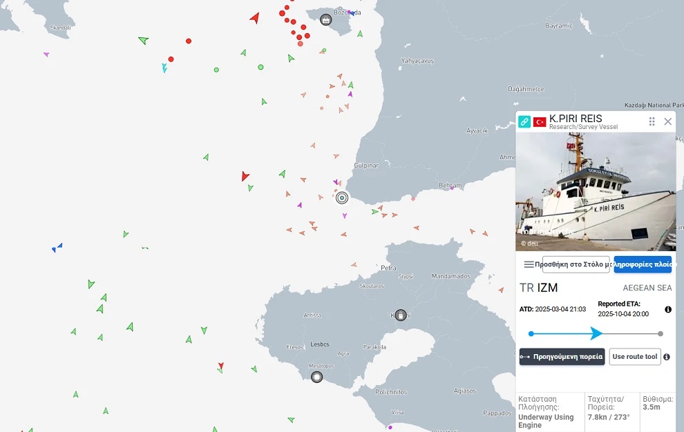 Το ωκεανογραφικό σκάφος «Πίρι Ρέις» έβγαλε στο Αιγαίο η Τουρκία για να διεξάγει έρευνες, με την Αθήνα να απαντά εκδίδοντας αντι-NAVTEX.