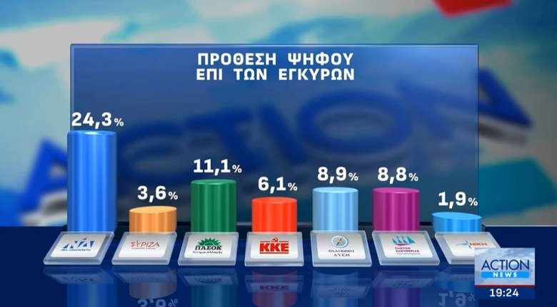 Στην πρόθεση ψήφου παραμένει με μεγάλη διαφορά μπροστά η Νέα Δημοκρατία σε σχέση με το δεύτερο ΠΑΣΟΚ.