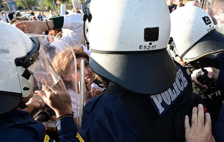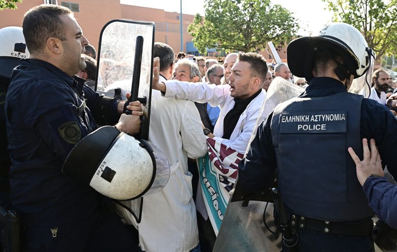 Επεισοδιακή συγκέντρωση διαμαρτυρίας εργαζομένων στον χώρο της Υγείας, λίγο πριν την επίσκεψη του πρωθυπουργού