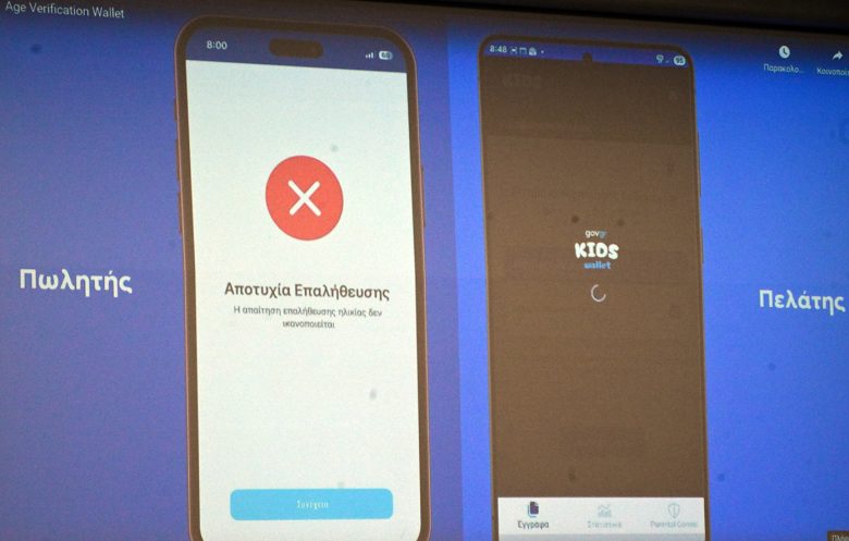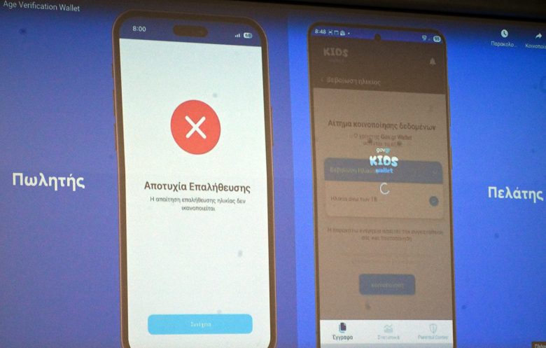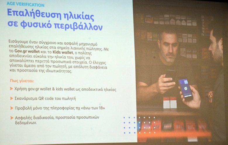 Το τρίτο εργαλείο είναι η ψηφιακή επαλήθευση ηλικίας. Όποιος θέλει να αγοράσει αλκοόλ ή καπνό θα πρέπει να δείχνει τη νέα ταυτότητα και θα υπάρχει ενημέρωση στο Gov.gr wallet για να υπάρχει η επιλογή ελέγχου ηλικίας. Ο πωλητής δεν θα χρειάζεται να συνδεθεί. Βγαίνει ένα QR Code και αν κάποιος είναι ανήλικος θα βγαίνει ένα κόκκινο σήμα που θα δείχνει ότι ο υποψήφιος αγοραστής είναι κάτω των 18.