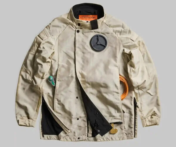 Το τζάκετ είναι λευκό με σκούρες γκρι κάθετες λωρίδες. Το καθένα αποτελείται από 100 πλακίδια γραφενίου, το πιο αγώγιμο υλικό στον κόσμο και ένα από τα πιο ακριβά. Η κατασκευή του μοναδικού αυτού κομματιού κόστισε περίπου 100.000 λίρες, καθώς το εσωτερικό του υφάσματος διατρέχουν πολλά χρυσά καλώδια.